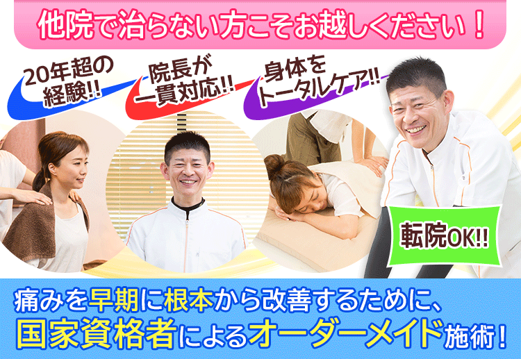 一日でも早く回復して頂く為、しっかりと施術をさせて頂きますので、まずはご来院ください。